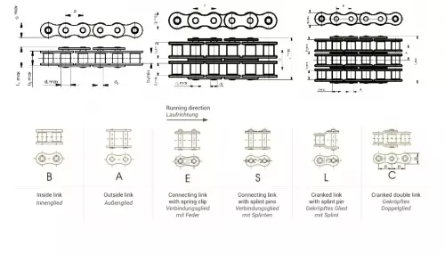Роликовые цепи с прямым контуром пластин - серия Б